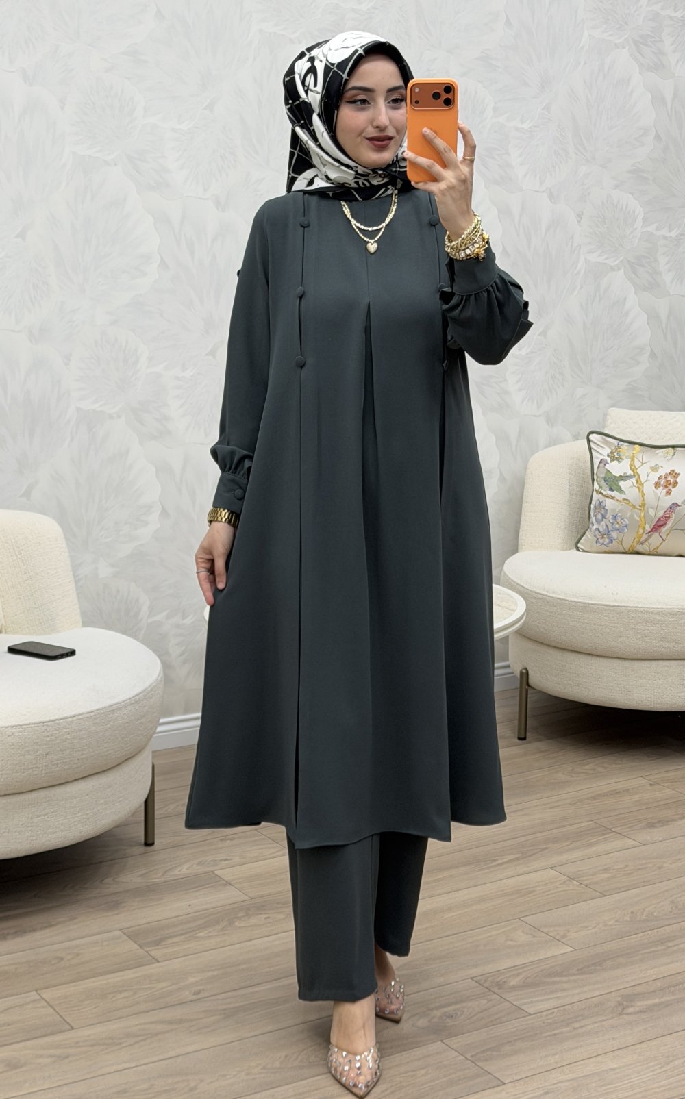 Ahsen Takım,hem iş hem de günlük hayatınızda rahatlıkla tercih edebileceğiniz çok yönlü bir parçadır. Şıklığı konforla buluşturan bu tasarım, sezonun en gözde modellerinden biri olacak