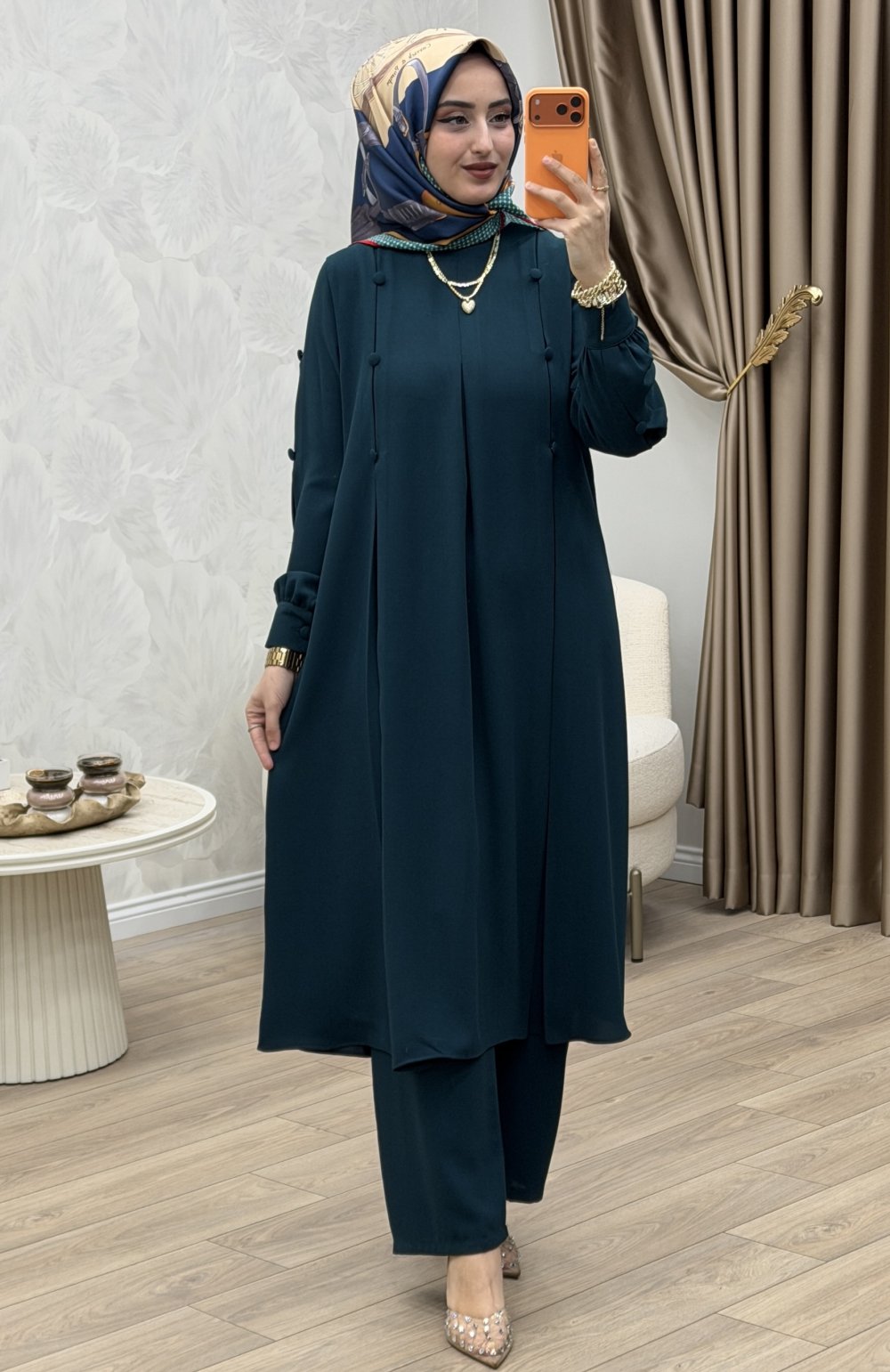 Ahsen Takım,hem iş hem de günlük hayatınızda rahatlıkla tercih edebileceğiniz çok yönlü bir parçadır. Şıklığı konforla buluşturan bu tasarım, sezonun en gözde modellerinden biri olacak