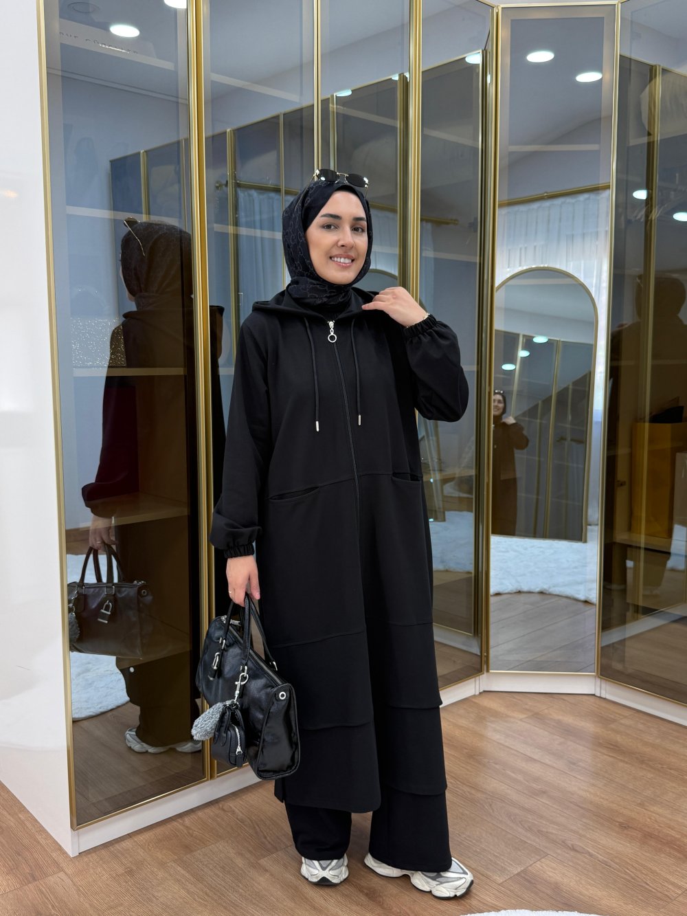 Aller Detaylı Kapüşonlu İkili Takım Siyah