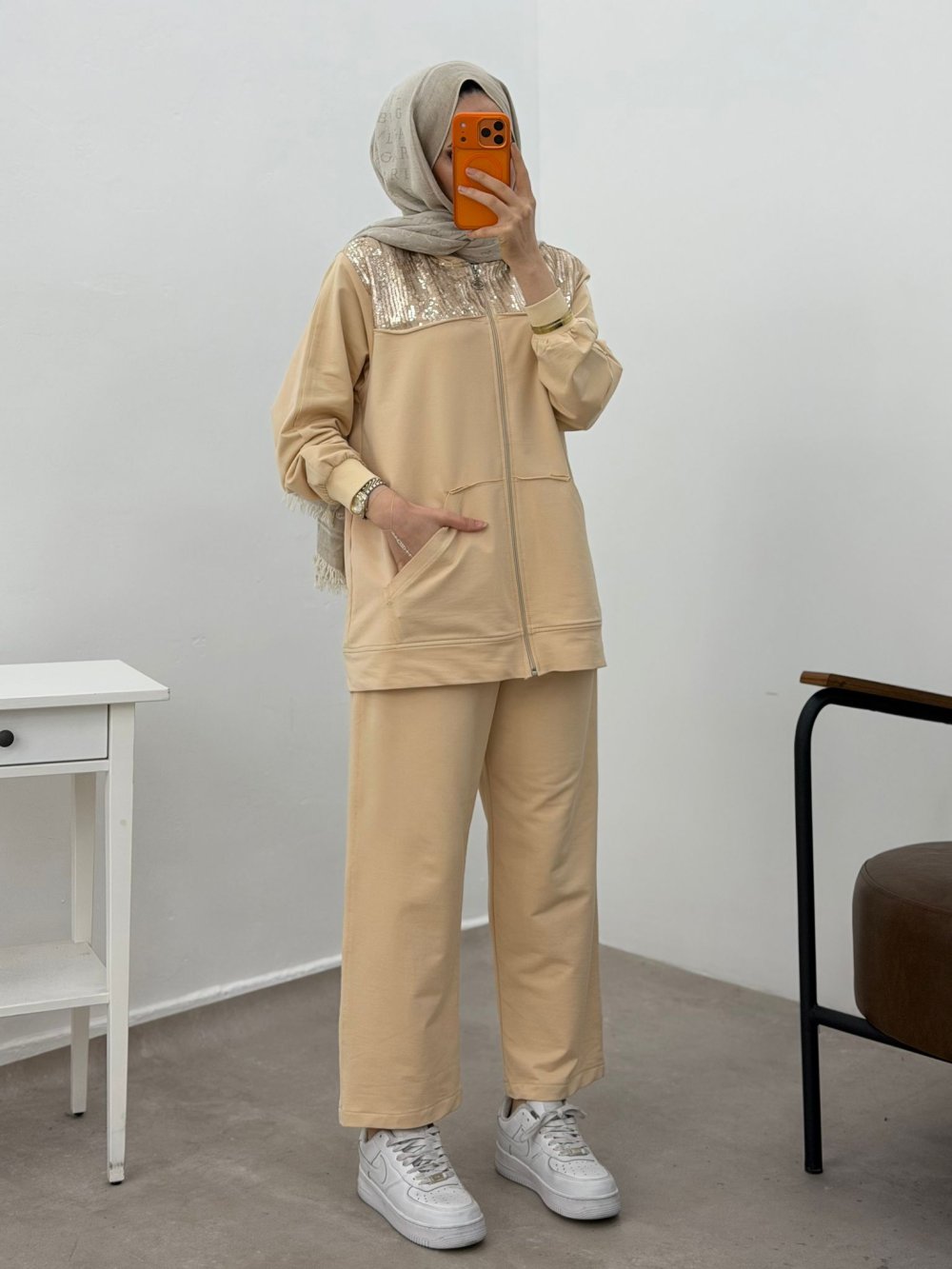 Ceket Tam Boy Fermuarlı, Pul Payet Detaylı