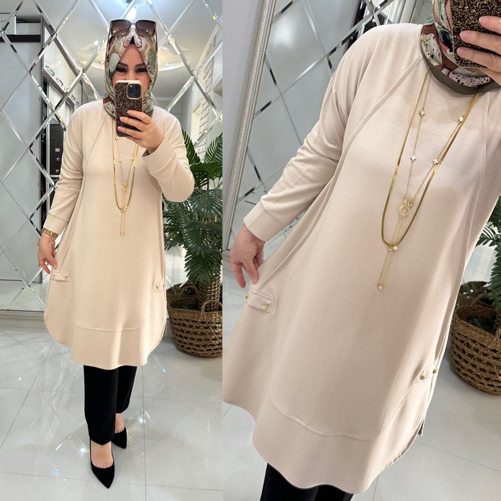 Beyza tunik Oyşo kumaş krem Krem