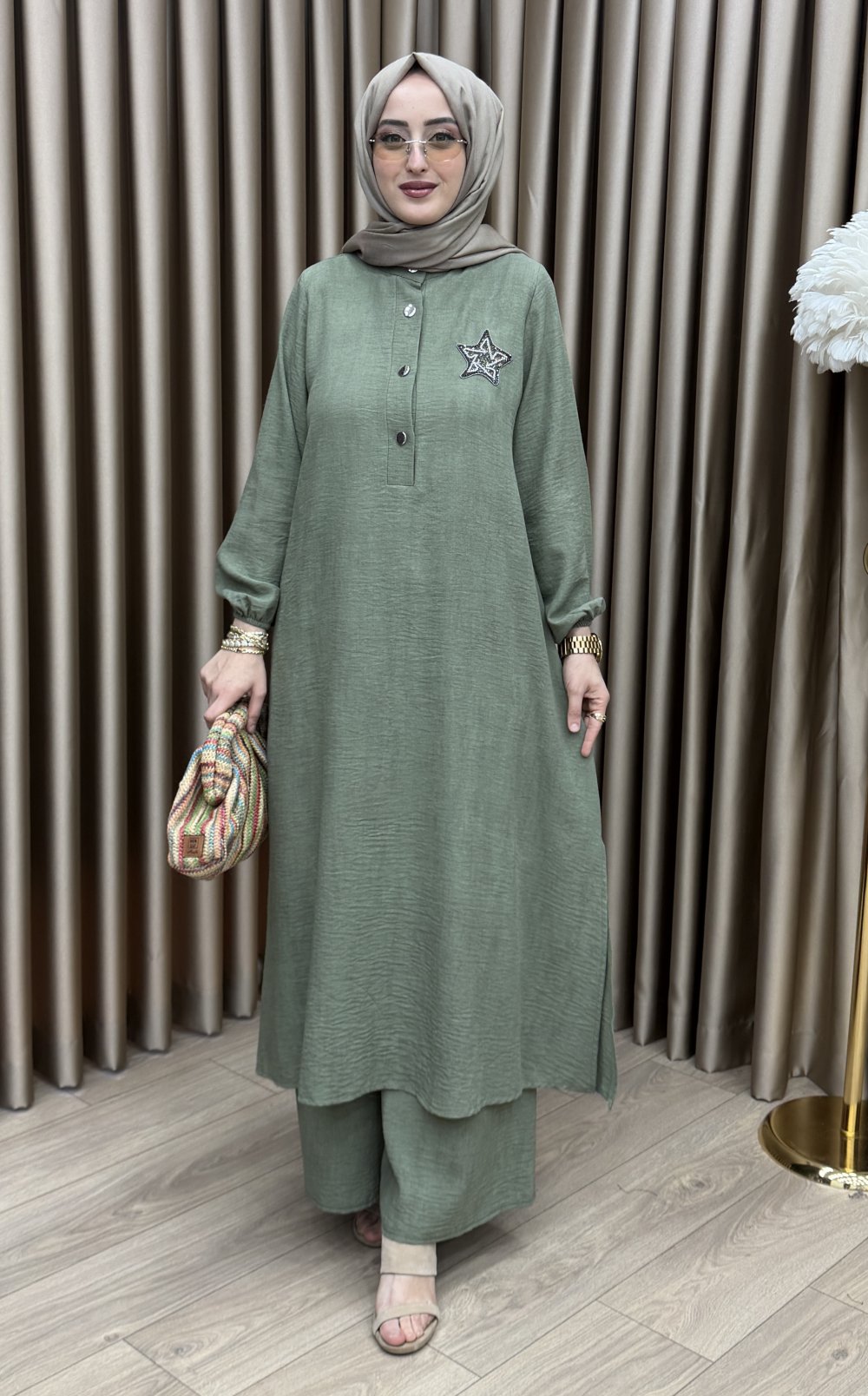 Rahatlık ve şıklığı bir araya getiren Birce Takım,sade ama zarif duruşuyla günlük kombinlerinizi güçlendiriyor. Yumuşak kumaşı ve esnek yapısı sayesinde gün boyu konfor sunarken, modern kesimiyle stil sahibi bir görünüm yaratır.