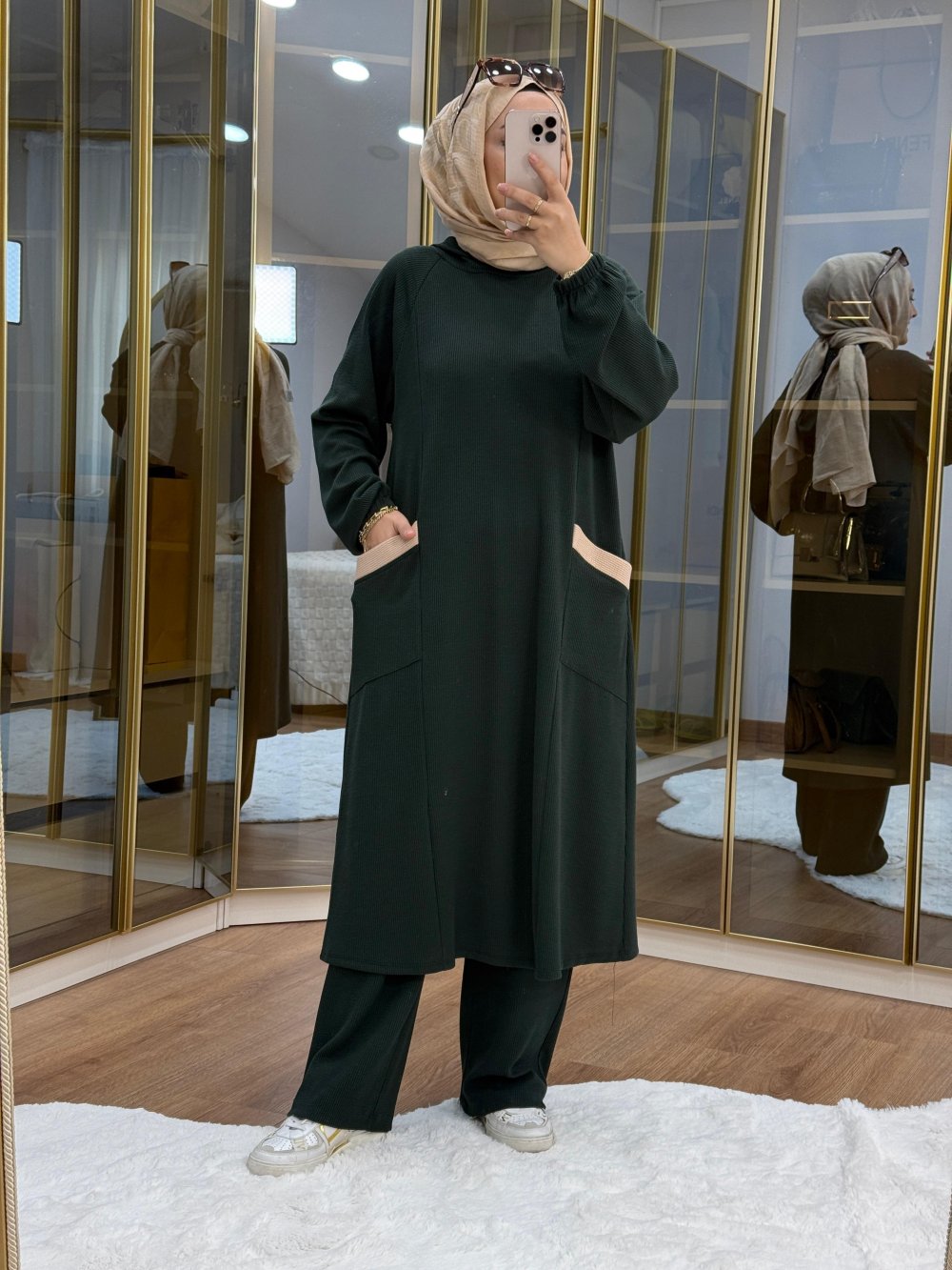 Burgu Kumaş Garnili Takım Haki