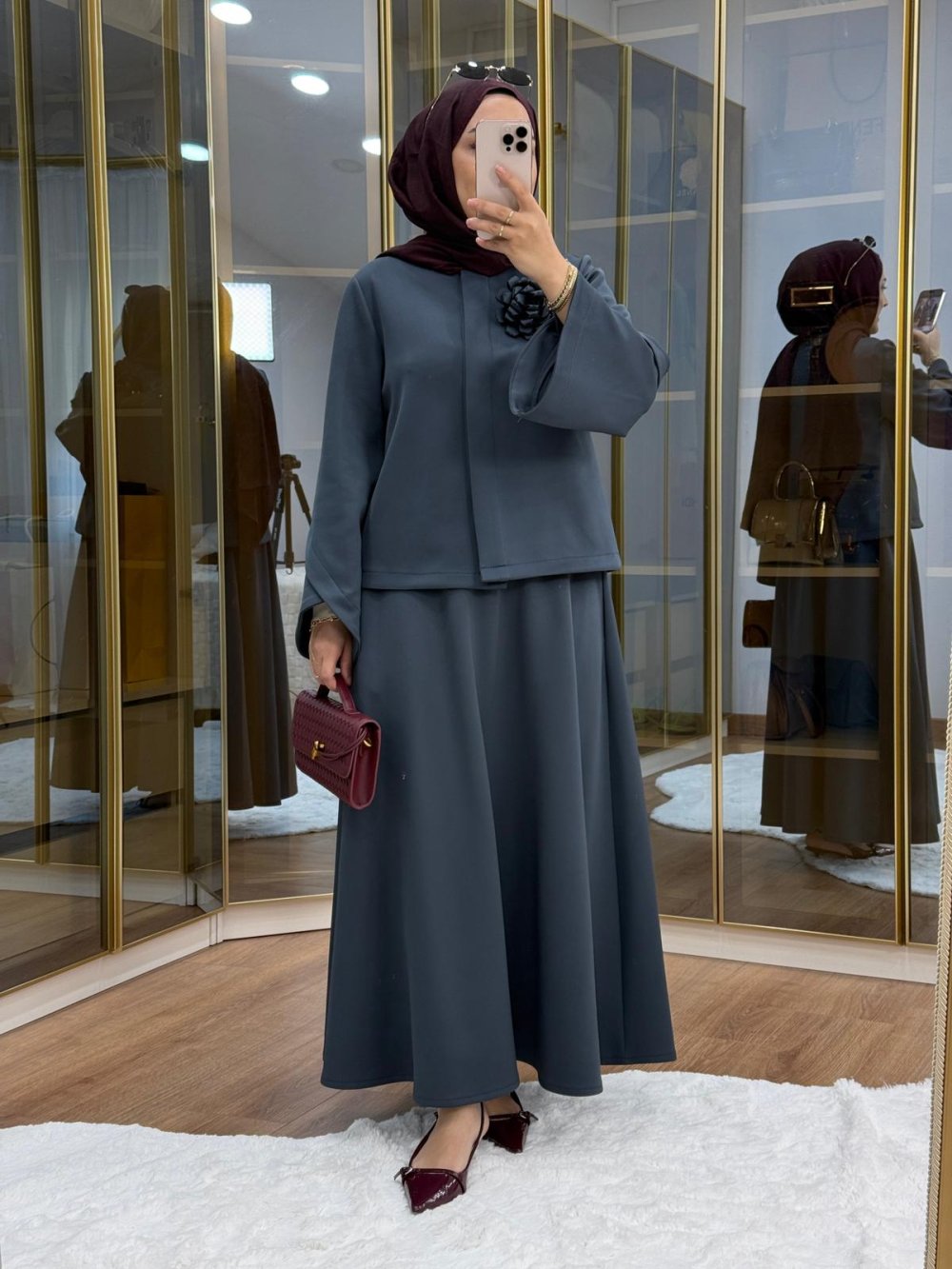 •Çiçek Broş detaylı scuba etekli takım •