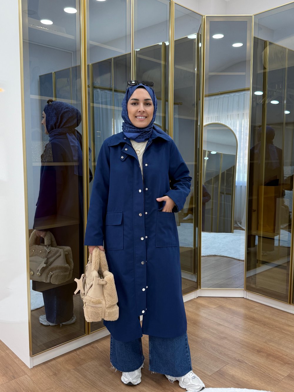 Çıtçıtlı Detaylı Parka Trençkot Lacivert
