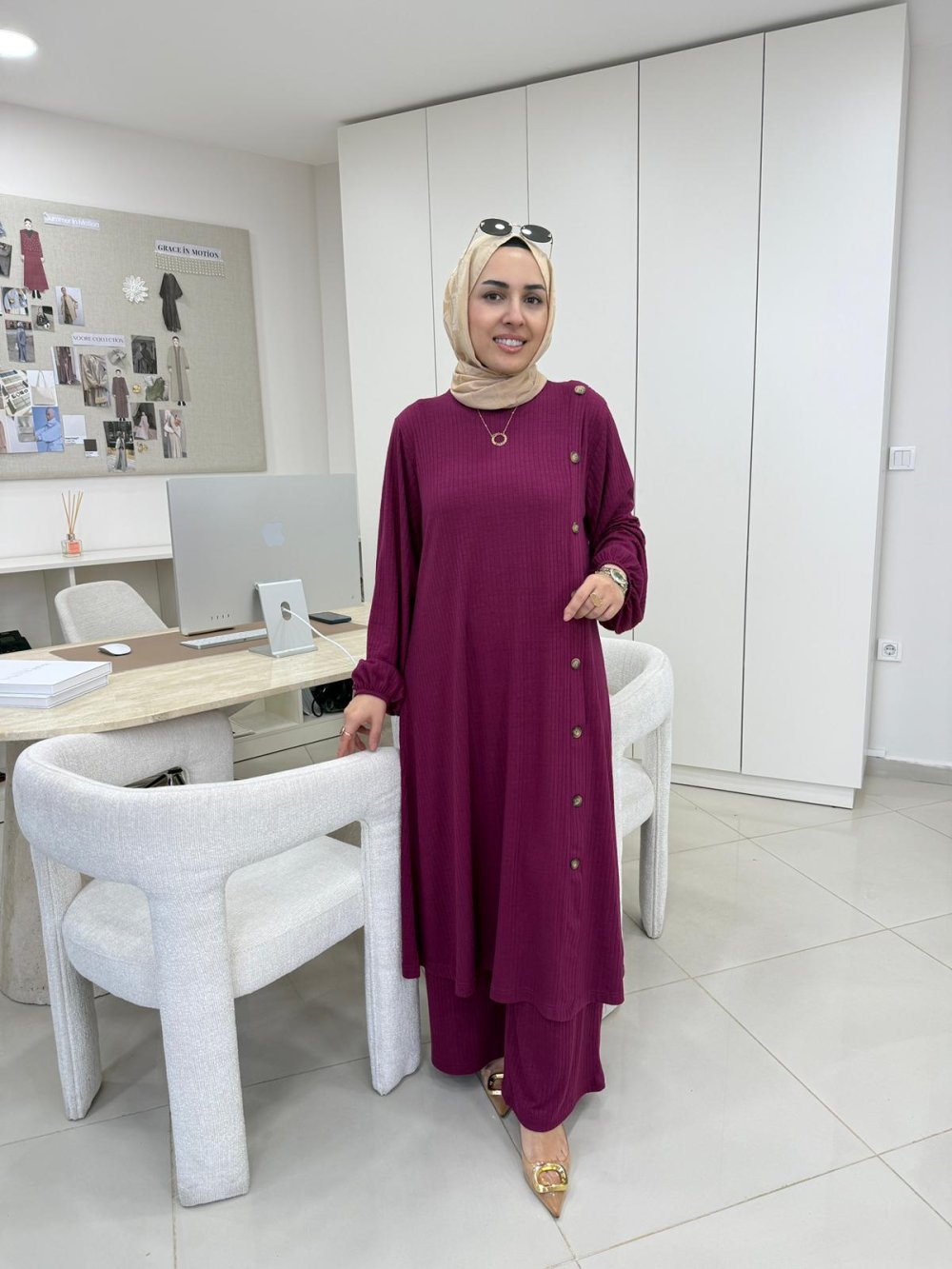 Çubuk Düğme Detaylı Takım Mürdüm