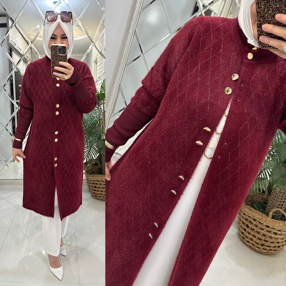 Demet angora hırka bordo Bordo