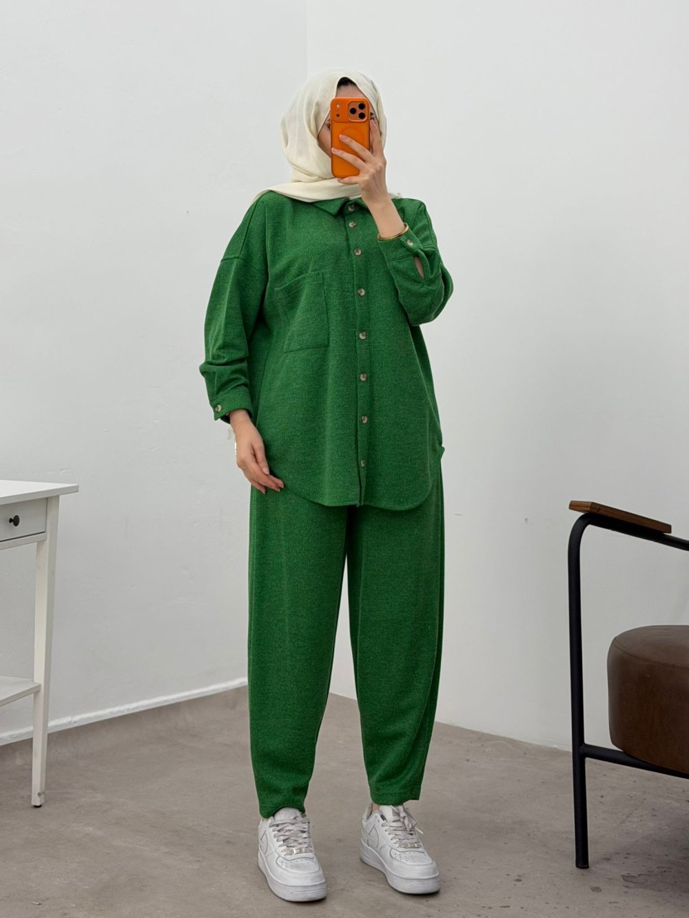 Tunik Tam Boy Düğme, Cep Detaylı