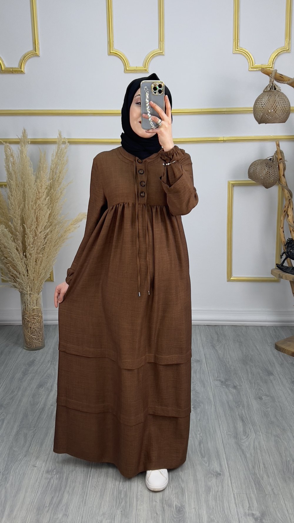 1.sınıf keten kumaş robadan ,ön düğmeleri açılıyor bağcıklı