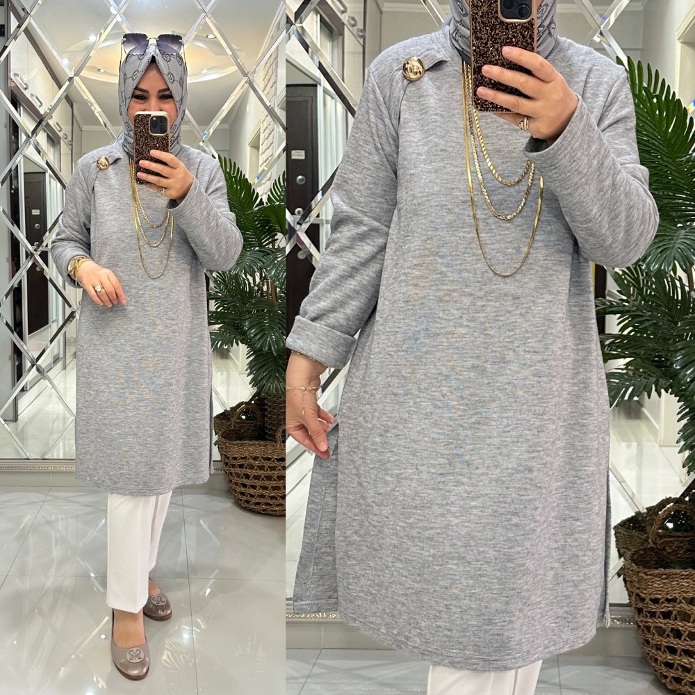 Ergül kazak triko kumaş gri Gri