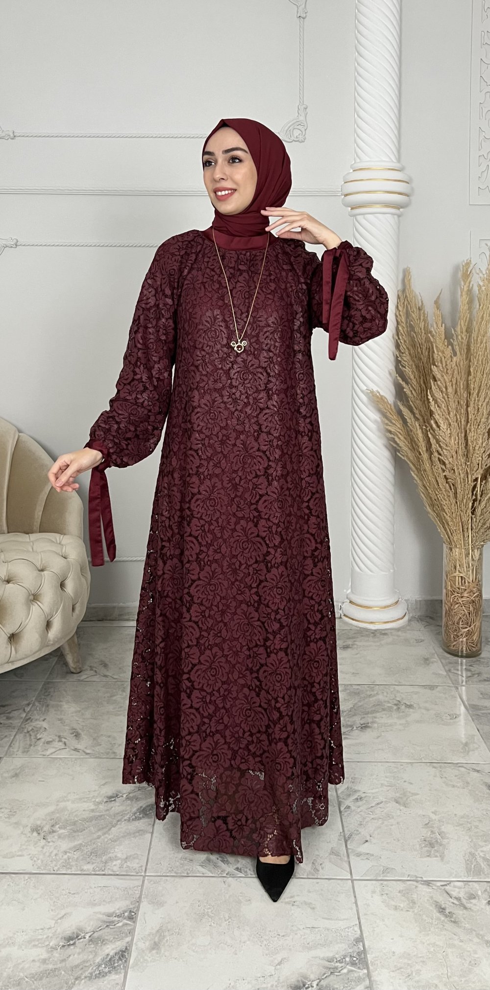 Dış dantel elbise boy 135 cm