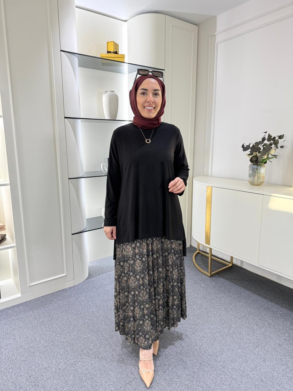 Tunik ön boy 75 cm, arka boy 85 cm’dir.
