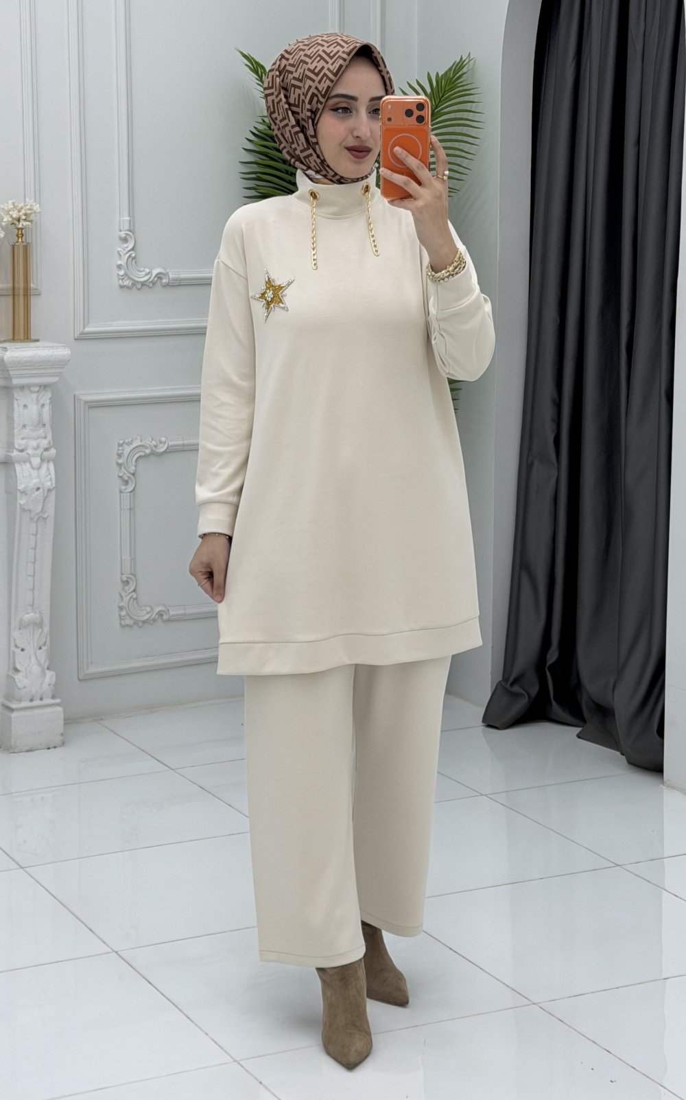 Rahatlık ve şıklığı bir araya getiren Ezgi Takım, sade ama zarif duruşuyla günlük kombinlerinizi güçlendiriyor. Yumuşak kumaşı ve esnek yapısı sayesinde gün boyu konfor sunarken, modern kesimiyle stil sahibi bir görünüm yaratır.