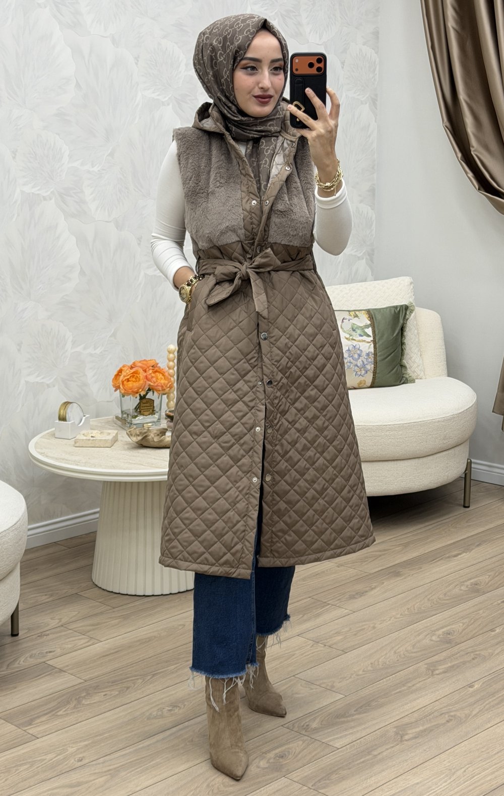 Kapitone ve kürk detaylı kumaştır