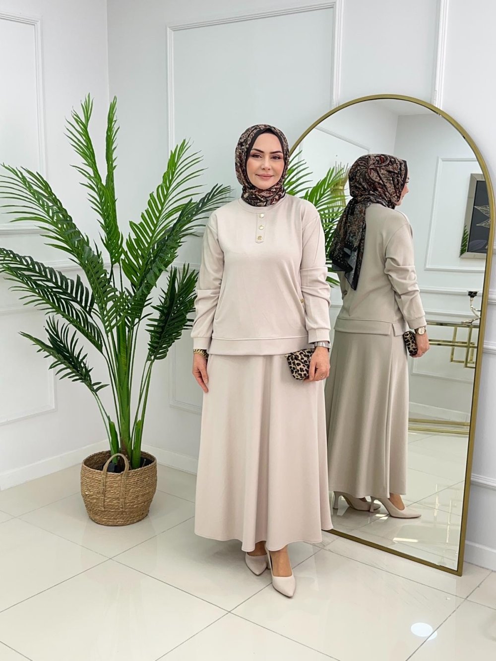 GÜLCAN ETEKLİ TAKIM - BEJ