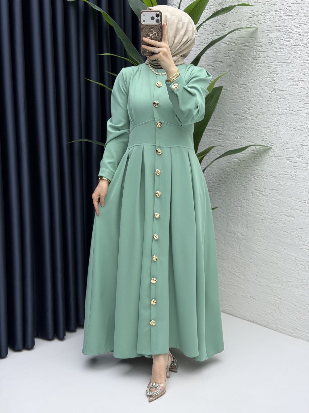Sezonun trendi düğme detaylı elbisemiz 11 rengiyle satışta