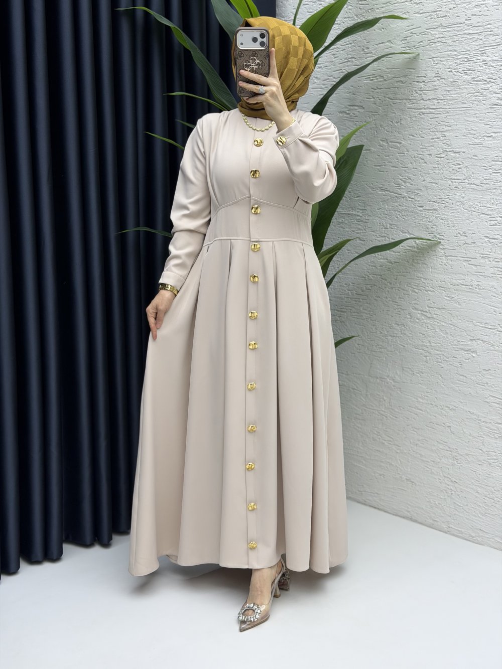 Sezonun trendi düğme detaylı elbisemiz 11 rengiyle satışta