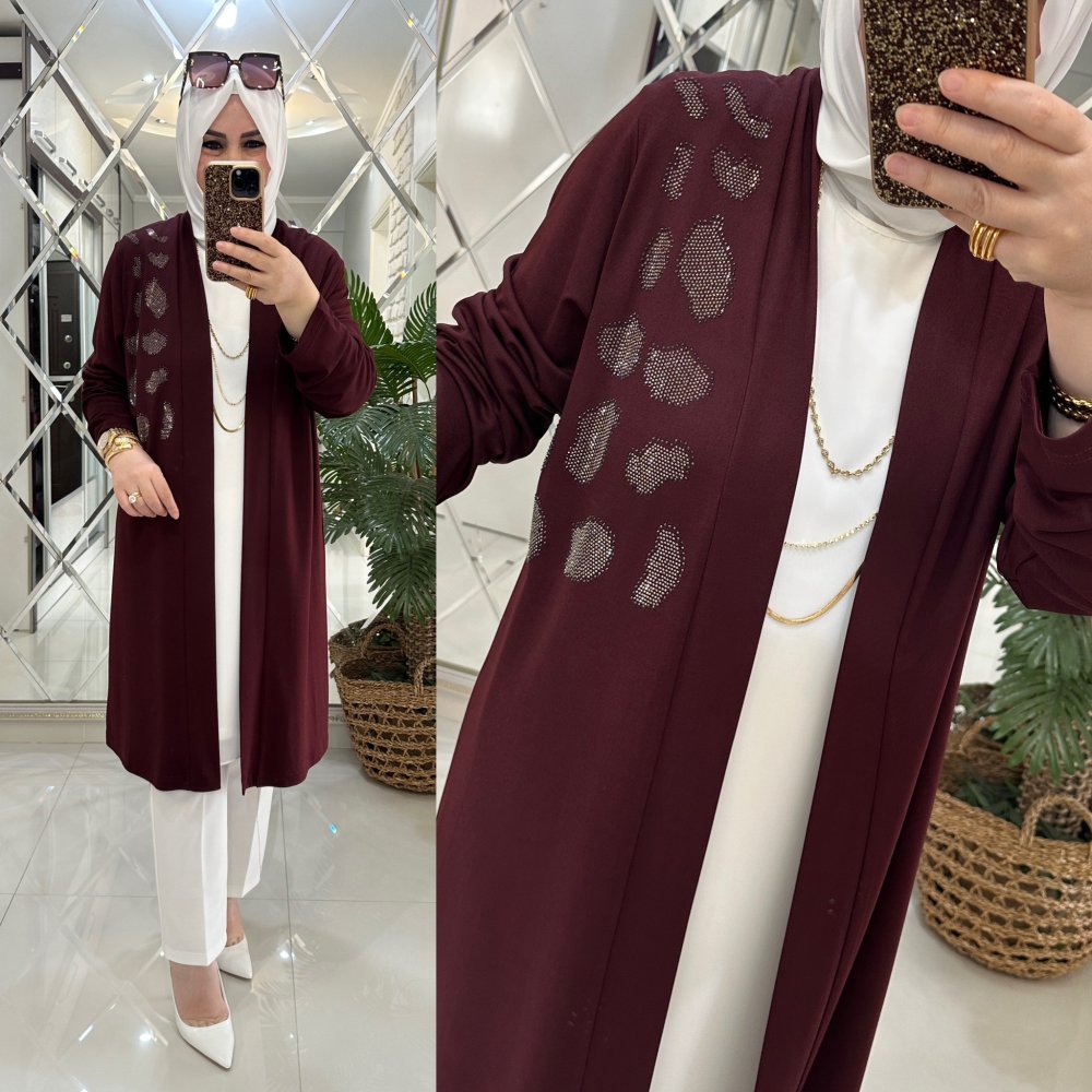 İnci hırka ipek penye kumaş bordo Bordo