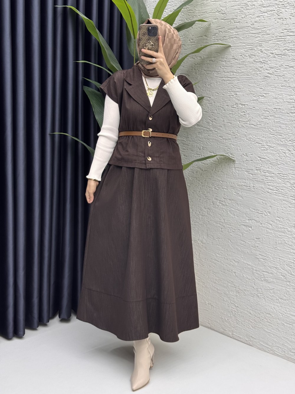 İster kemerli ister kemersiz kullanabileceğiniz etek yelek takımımız satışta