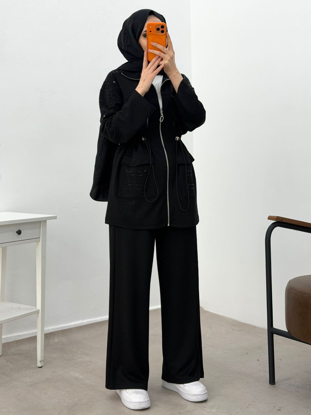 Tam Boy Fermuarlı, Beli Büzgü