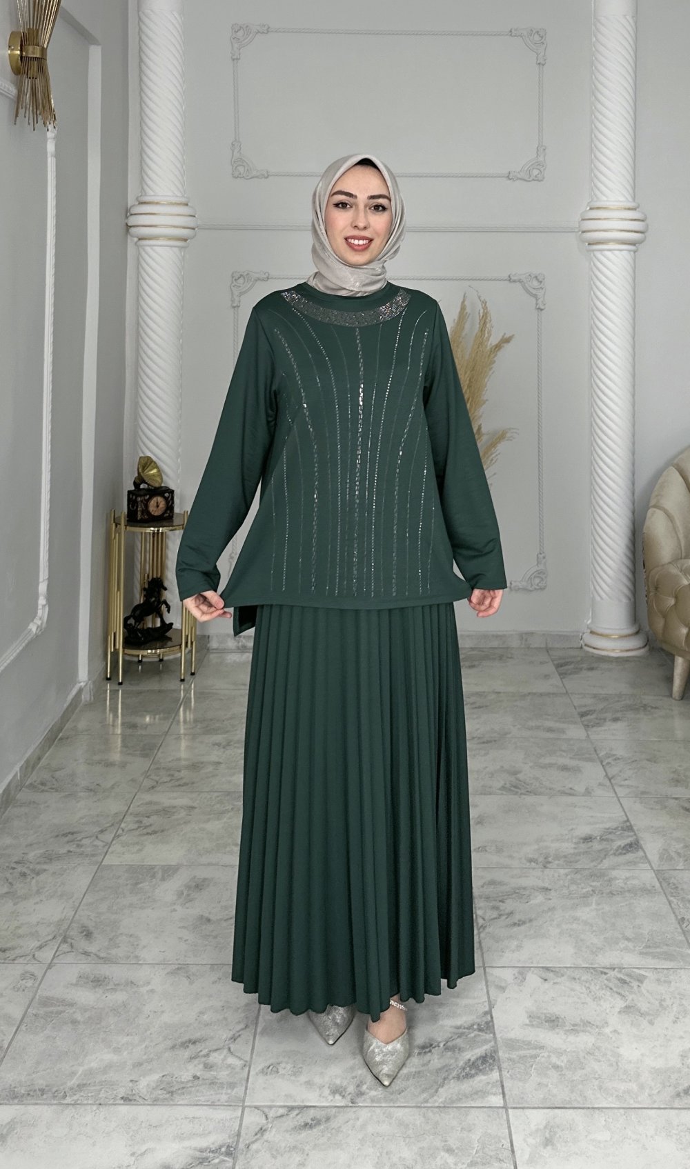 Tunik ön kısmı taş detaylı