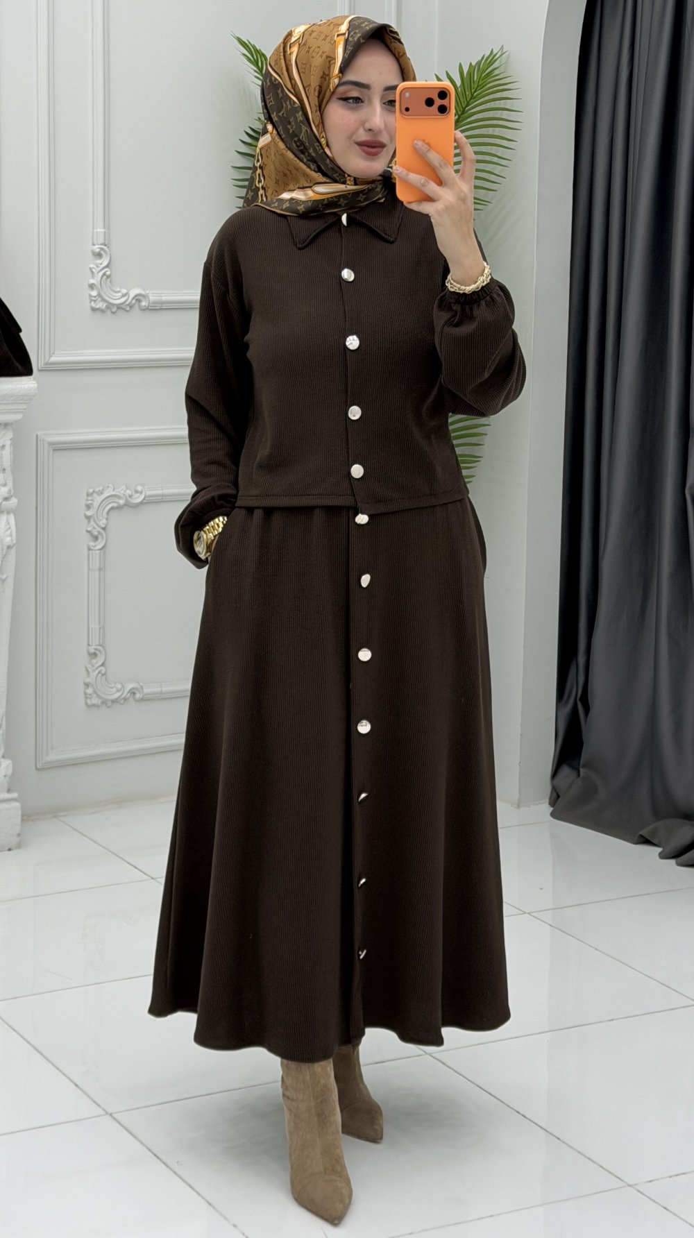 Rahatlık ve şıklığı bir araya getiren Neval  Etek Takım, sade ama zarif duruşuyla günlük kombinlerinizi güçlendiriyor. Yumuşak kumaşı ve esnek yapısı sayesinde gün boyu konfor sunarken, modern kesimiyle stil sahibi bir görünüm yaratır.