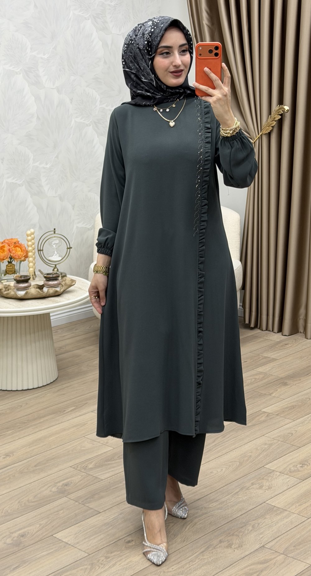 Nevin Takım,hem iş hem de günlük hayatınızda rahatlıkla tercih edebileceğiniz çok yönlü bir parçadır. Şıklığı konforla buluşturan bu tasarım, sezonun en gözde modellerinden biri olacak