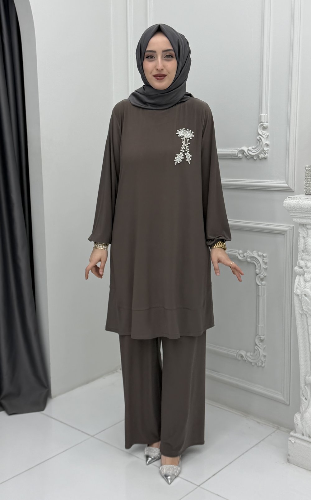 Nilda  Takım, hem iş hem de günlük hayatınızda rahatlıkla tercih edebileceğiniz çok yönlü bir parçadır. Şıklığı konforla buluşturan bu tasarım, sezonun en gözde modellerinden biri olacak!