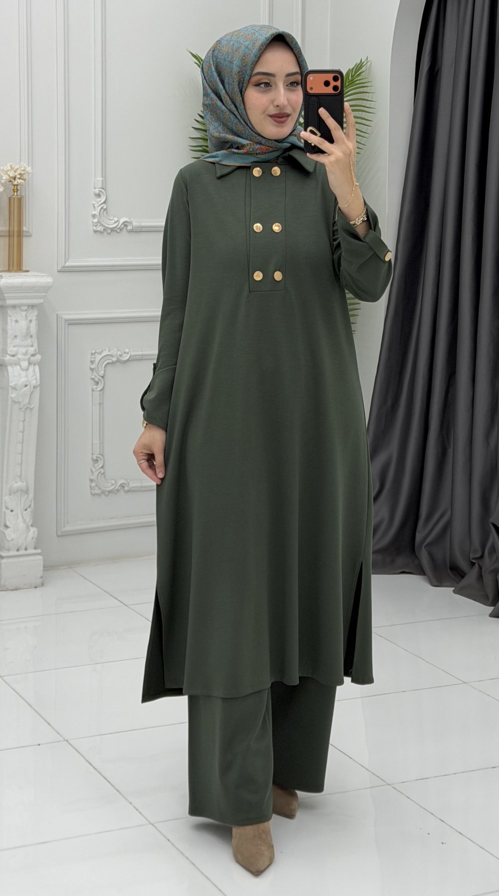 Rahatlık ve şıklığı bir araya getiren Nur Takım, sade ama zarif duruşuyla günlük kombinlerinizi güçlendiriyor. Yumuşak kumaşı ve esnek yapısı sayesinde gün boyu konfor sunarken, modern kesimiyle stil sahibi bir görünüm yaratır.