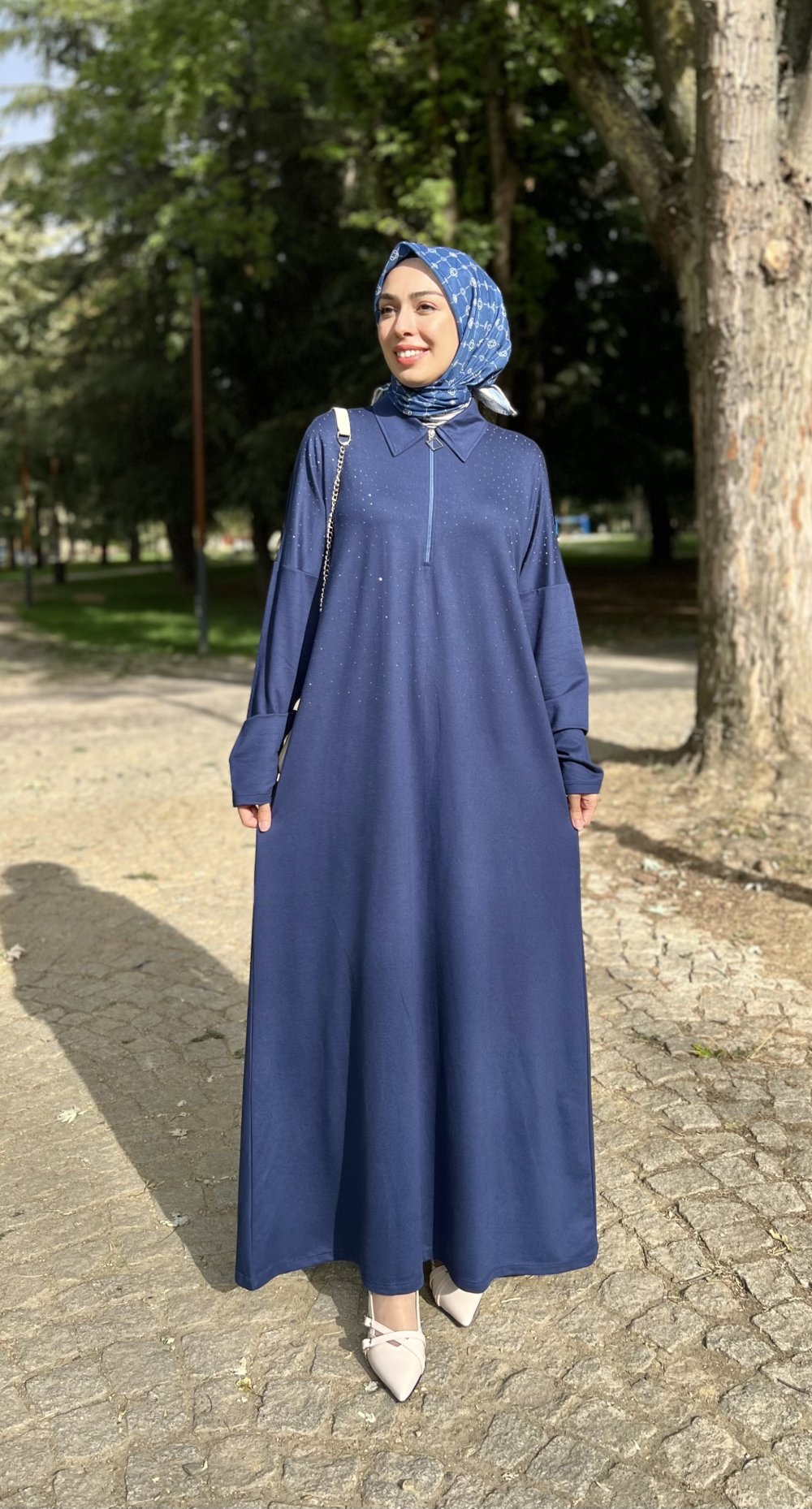 Önü kısmı fermuarlı taş detaylıdır