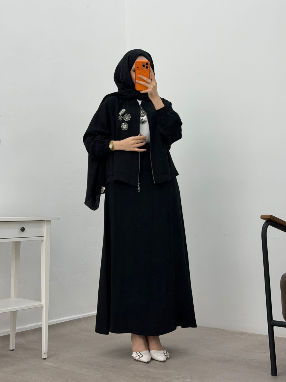 Ceket Taş İşlene Detaylı, Fermuarlı