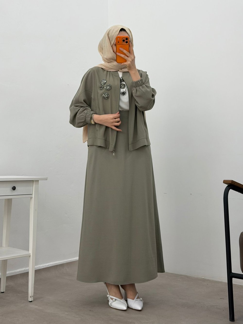 Ceket Taş İşlene Detaylı, Fermuarlı