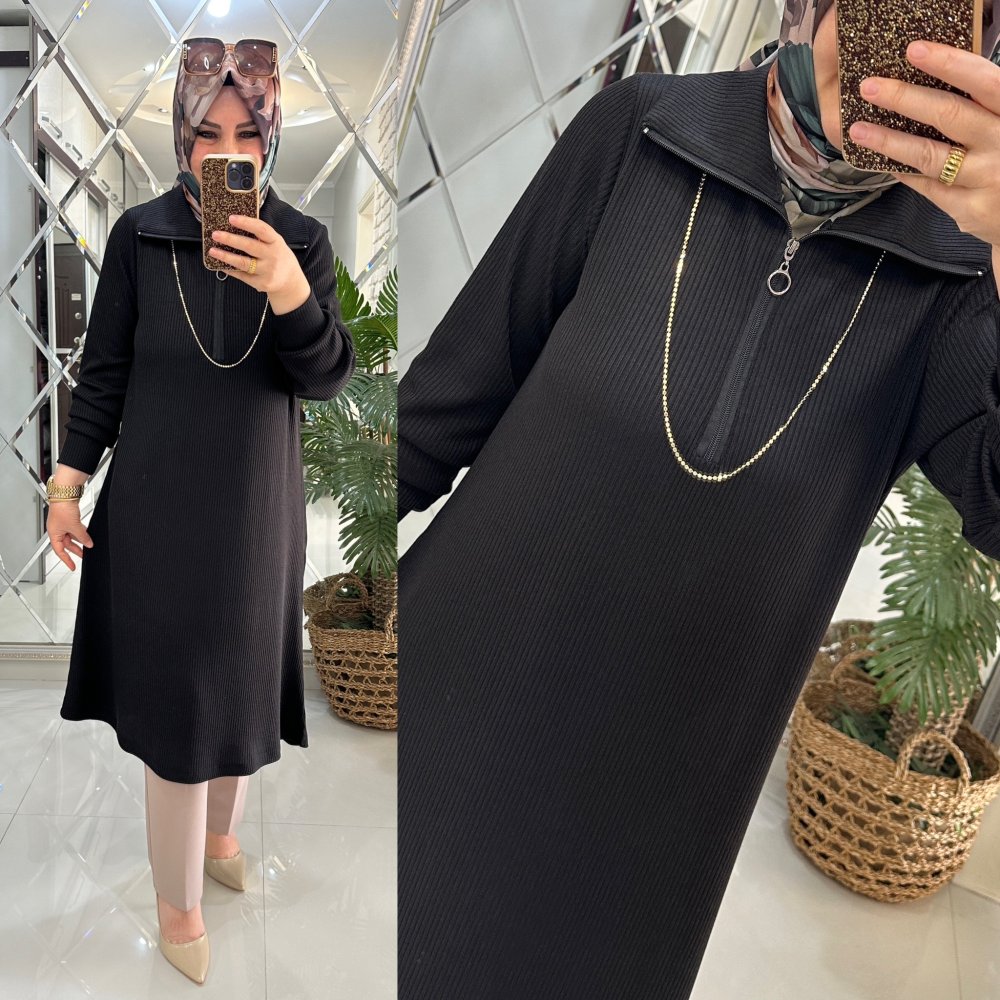 Tuna tunik fitilli triko siyah Siyah