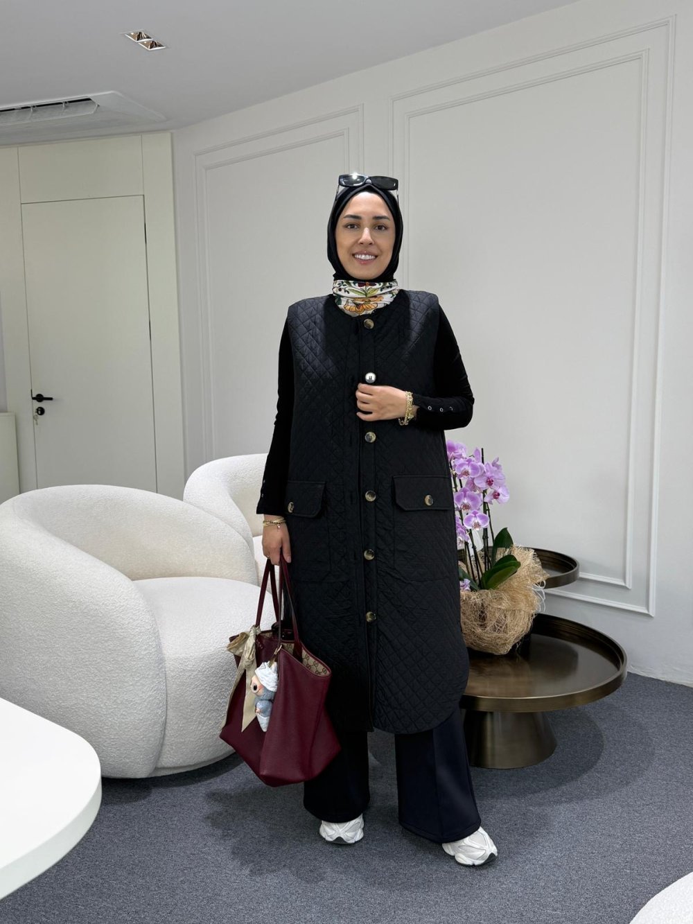 Kapitone yelek -Siyah
