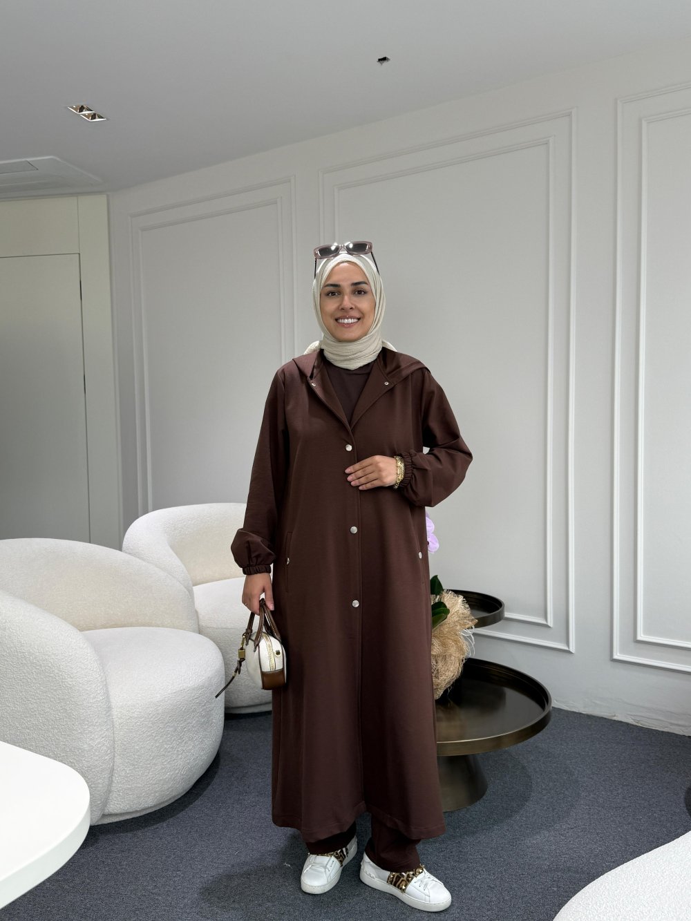 Uzun Kapüşonlu İkiiplik Takım Kahverengi