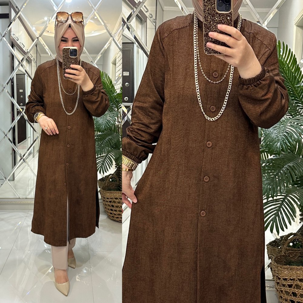 -115 cm uzunluğunda, yanlardan yırtmaçlı