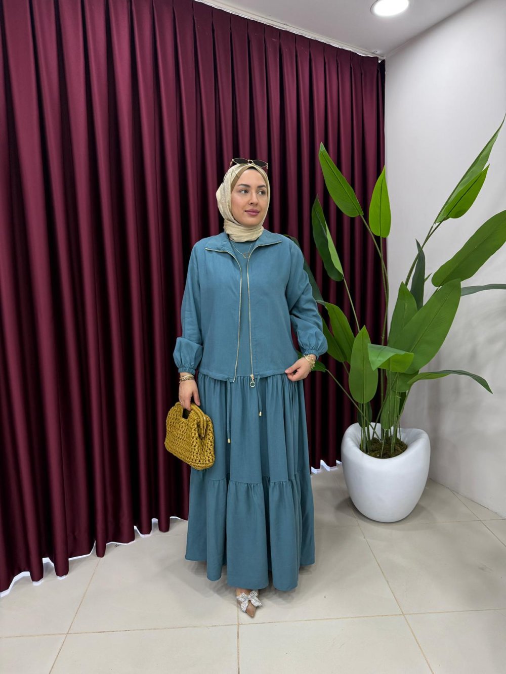 Elbise boy 140 cm’dir ve kat kat detayları mevcuttur.