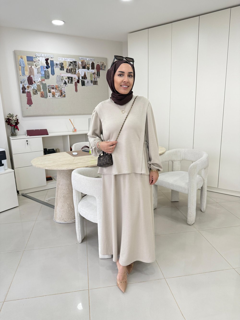 Yandan Büzgülü Oysho Etekli Takım Bej