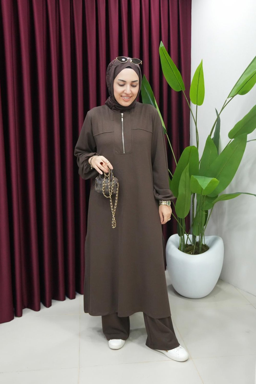 Yandan Yırtmaçlı Fermuar Detaylı Oysho Takım Kahverengi