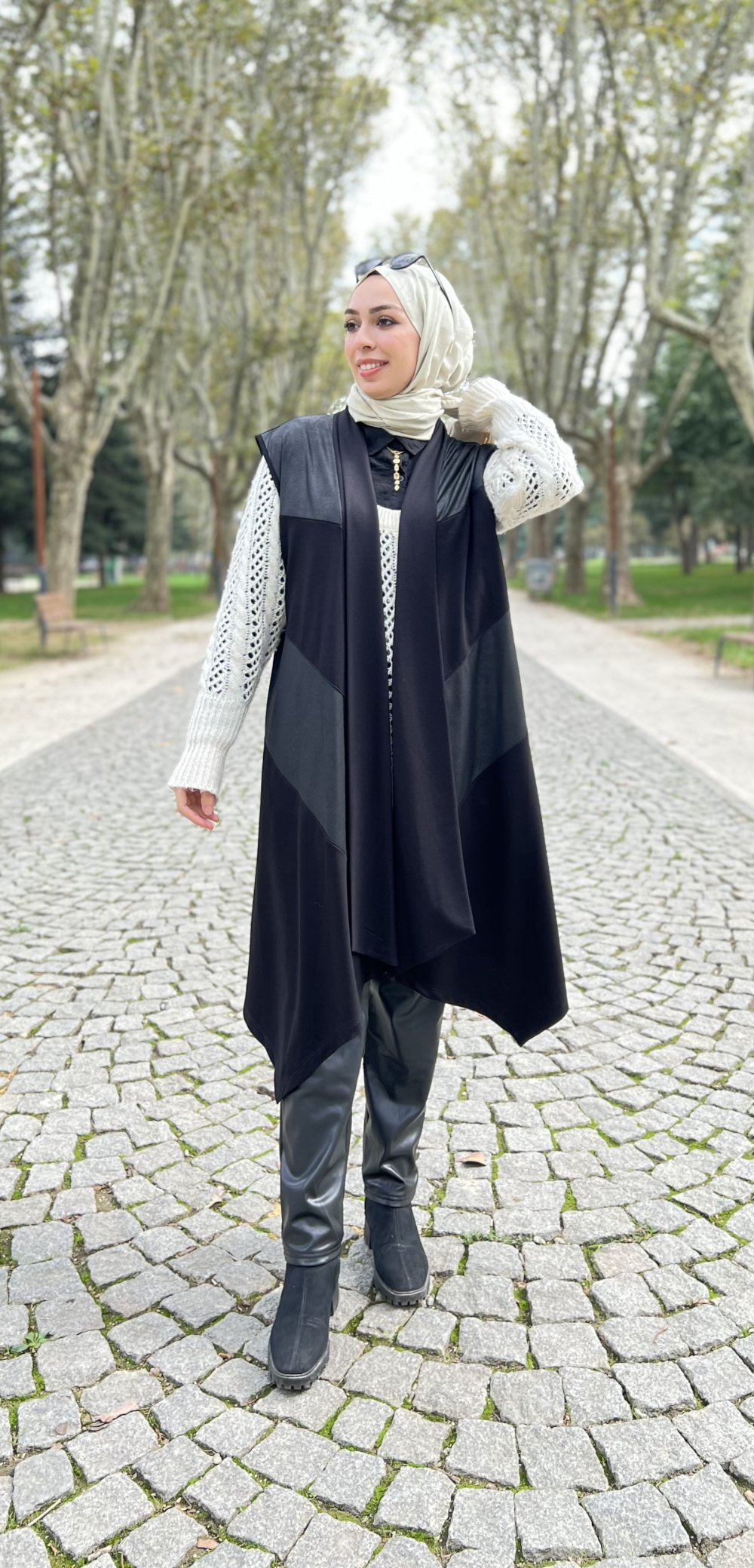 YELDA DERİ DETAYLI YELEK
